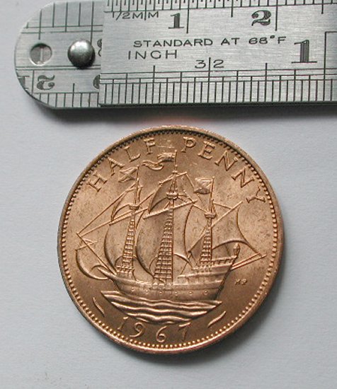A lovely inexpensive present. Once only, due to an interesting find. Discovered in a vault, a mint sealed bag of 1967 copper ha'pennies (½d, or Half a Penny) - 480 of in total.