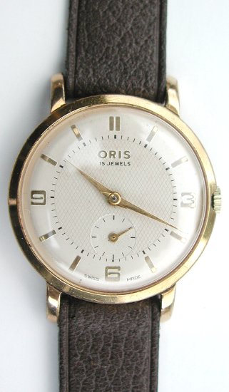 Gents classic gold plated hand wound watch by Oris circa 1960. The watch in very good condition with superb engine turned silvered dial. Fantastic value
