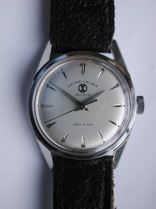 A vintage 1960 Fave Leuba Sea King steel manual wind watch. The watch has a super clean silved dial which is all original, handwound movement housed in a steel screw back case , a nice classic watch by a good maker
