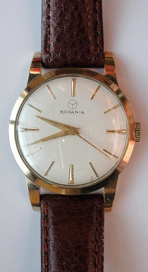 Vintage solid 9 carat gold 1959 Rodania hand wound mechanical watch, amazingly still with its original box. Click here to see the box The watch in excellent condition throughout showing slight speckling on the dial (hardly noticeable) associated with age,gorgeous typical 1950'S 9 carat gold case hallmarked for Edinburgh 1959. A good buy