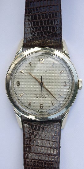 Gorgeous 1950'S 14 carat yellow gold vintage Cyma Automatic Watersport. The watch consisting of superb original "honeycomb" dial with applied gold hour markers, gold hands with blued steel centre seconds hand, self-winding automatic movement housed in a heavy solid 14 carat gold screw back case with stylised lugs , a stunning watch which exudes quality and one of my favourites